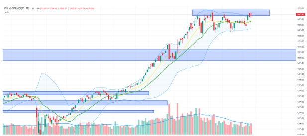 - Các chỉ báo kỹ thuật vẫn đang cho thấy tín hiệu tích cực, Nếu chỉ số vượt dứt khoát vùng 1720–1725 điểm, mục tiêu kế tiếp có thể hướng tới 1750–1780 điểm.