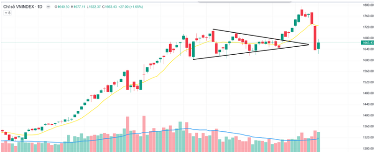 - Trong kịch bản lạc quan, thị trường có thể hồi về vùng 1700 – 1720 điểm. Tuy nhiên đây cũng là vùng biên trên trong giai đoạn đi ngang trước nên xác suất chỉnh lại còn cao