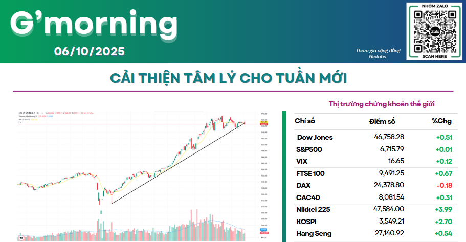• Tâm lý thị trường đang hướng đến các động lực mới, đặc biệt là kết quả kinh doanh quý III và quyết định nâng hạng FTSE dự kiến công bố trong tuần tới.