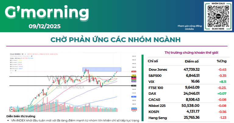 • Chỉ số đang tiệm cận vùng cản lịch sử, trong khi nhiều nhóm cổ phiếu khác vẫn chịu áp lực điều chỉnh nên thị trường chưa hoàn toàn giải tỏa tâm lý nhà đầu tư.